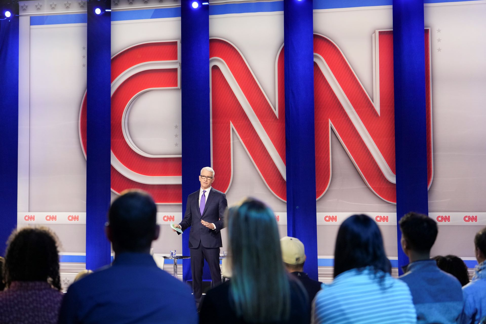 Archive – Anderson Cooper leads a CNN public debate at Sun Center Studios in Chester Township, Pennsylvania, on October 23, 2024. Database billionaire Larry Ellison and his son David, Favorites de Trump, may soon control an empire that includes CBS, Paramount, Warner, CNN and part of Tiktok. (Erin Schaff/The New York Times)