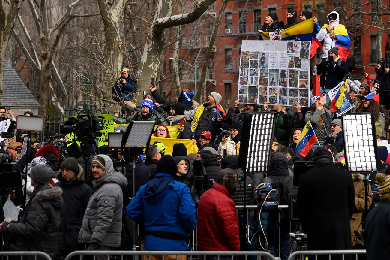 Demonstration in January in front of a federal court in New York in support of Maduro’s ouster. Credit: Karsten Moran/The New York Times