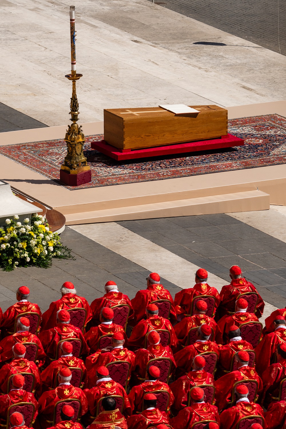 Pope Francis’ coffin during his funeral in St. Peter’s Basilica in Vatican City (Eric Lee/The New York Times)